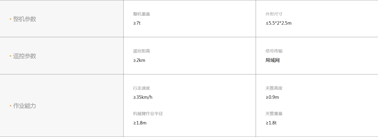 该车一共拥有5个档位,高时速>35km/h,可在现场快速移动执行障害清理,环境监测等工作。